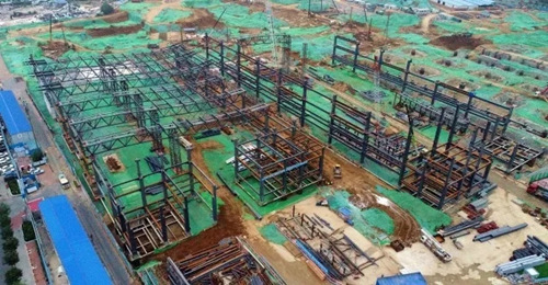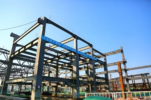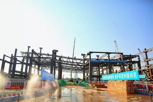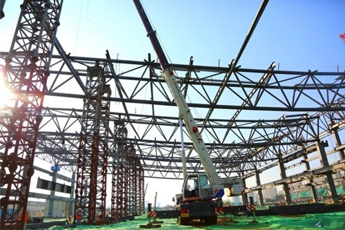 位于項目最南側(cè),最先開工的五號展館主體鋼結(jié)構(gòu)已基本完成。