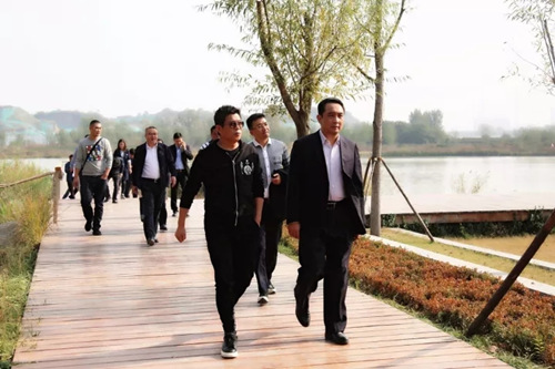 在集團(tuán)領(lǐng)導(dǎo)和相關(guān)人員陪同下,王中軍一行來到華山生態(tài)濕地公園,進(jìn)行了實(shí)地參觀考察,華山片區(qū)項目相關(guān)負(fù)責(zé)人向王中軍一行介紹了華山片區(qū)的開發(fā)建設(shè)情況。李國祥董事長向王中軍一行介紹道,華山歷史文化底蘊(yùn)深厚,這里曾發(fā)生過著名的齊晉鞍之戰(zhàn),趙孟頫的《鵲華秋色圖》取景于此,李白、元好問、康有為等文人墨客對此情有獨(dú)鐘。王中軍表示,華山是個有山有水有歷史文化的地方,非常的宜居,也很適合做文化藝術(shù)類項目,他有興趣在未來促進(jìn)此類項目的落地。