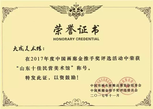 近日,在第六屆中國書畫市場(chǎng)健康發(fā)展論壇暨2017年度中國畫廊金推手獎(jiǎng)?lì)C獎(jiǎng)盛典上,集團(tuán)旗下的大成美術(shù)館(濟(jì)南城建集團(tuán)直屬機(jī)構(gòu))應(yīng)邀參加論壇并榮獲2017年度“山東十佳民營美術(shù)館”稱號(hào)。