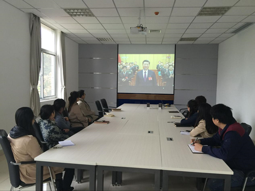 黨的十九大在京勝利閉幕,認(rèn)真學(xué)習(xí)宣傳貫徹好黨的十九大精神,是當(dāng)前和今后一個時期的頭等大事。實(shí)業(yè)中心等三個中心人員一起實(shí)時觀看學(xué)習(xí)黨的十九大直播。