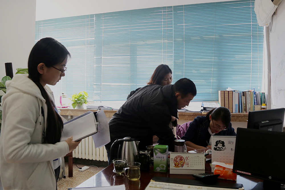 約好一上班9點(diǎn)鐘在辦公室見(jiàn)面采訪(fǎng),當(dāng)我們?nèi)缂s到那時(shí),辦公室里已經(jīng)擠滿(mǎn)了匯報(bào)溝通工作的人。9點(diǎn)鐘之后的一個(gè)小時(shí),馮繼軍辦公室里的人沒(méi)斷過(guò),她的電話(huà)鈴聲也幾乎沒(méi)停過(guò)。