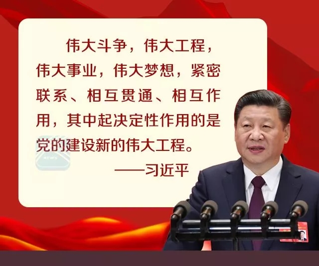 偉大斗爭,偉大工程,偉大事業(yè),偉大夢想,緊密聯(lián)系、相互貫通、相互作用,其中起決定性作用的是黨的建設新的偉大工程。