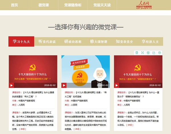 人民網(wǎng)·中國(guó)共產(chǎn)黨新聞網(wǎng)推出“云黨課”學(xué)習(xí)平臺(tái)