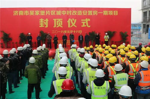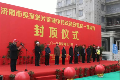 1月18日上午,備受社會關(guān)注的濟南市第一個多村整合改造城中村項目——吳家堡片區(qū)城中村改造安置房一期主體結(jié)構(gòu)順利封頂。