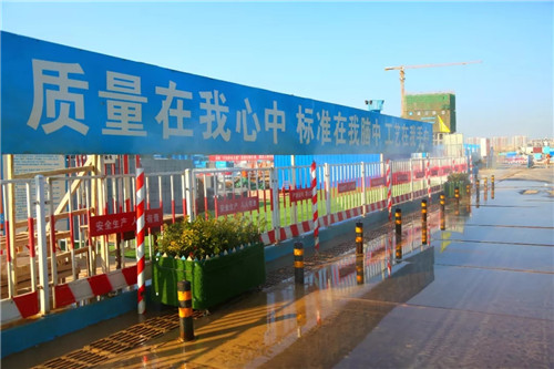 在有序推進建設進度的基礎上,項目施工中嚴格遵守揚塵污染治理和安全生產(chǎn)的相關規(guī)定措施,對存在的不足和問題快速徹底整改到位,認真落實市委市政府建設工程揚塵污染治理“四個一律”和“六個百分之百”工作要求,采取在施工現(xiàn)場配備霧炮機進行濕法作業(yè),施工現(xiàn)場道路及材料堆放場地鋪混凝土路面或鋼板路面進行硬化處理,安裝智能化揚塵檢測系統(tǒng)及綠網(wǎng)覆蓋等措施,確保各個階段揚塵防治工作萬無一失。