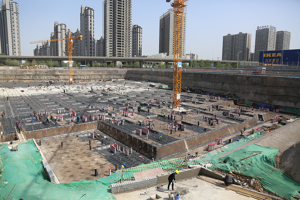 迪卡儂項目北鄰西部會展中心,東臨二環(huán)西路,南側(cè)緊鄰宜家項目,西側(cè)為大片居住辦公混合區(qū)。項目總建筑面積為3.2萬平方米,總計四層,其中地上兩層,地下兩層。自項目進場施工以來,已完成支護工程與抗浮錨桿的建設(shè),正在進行基礎(chǔ)防水、筏板基礎(chǔ)施工及鋼筋的綁扎等工作。