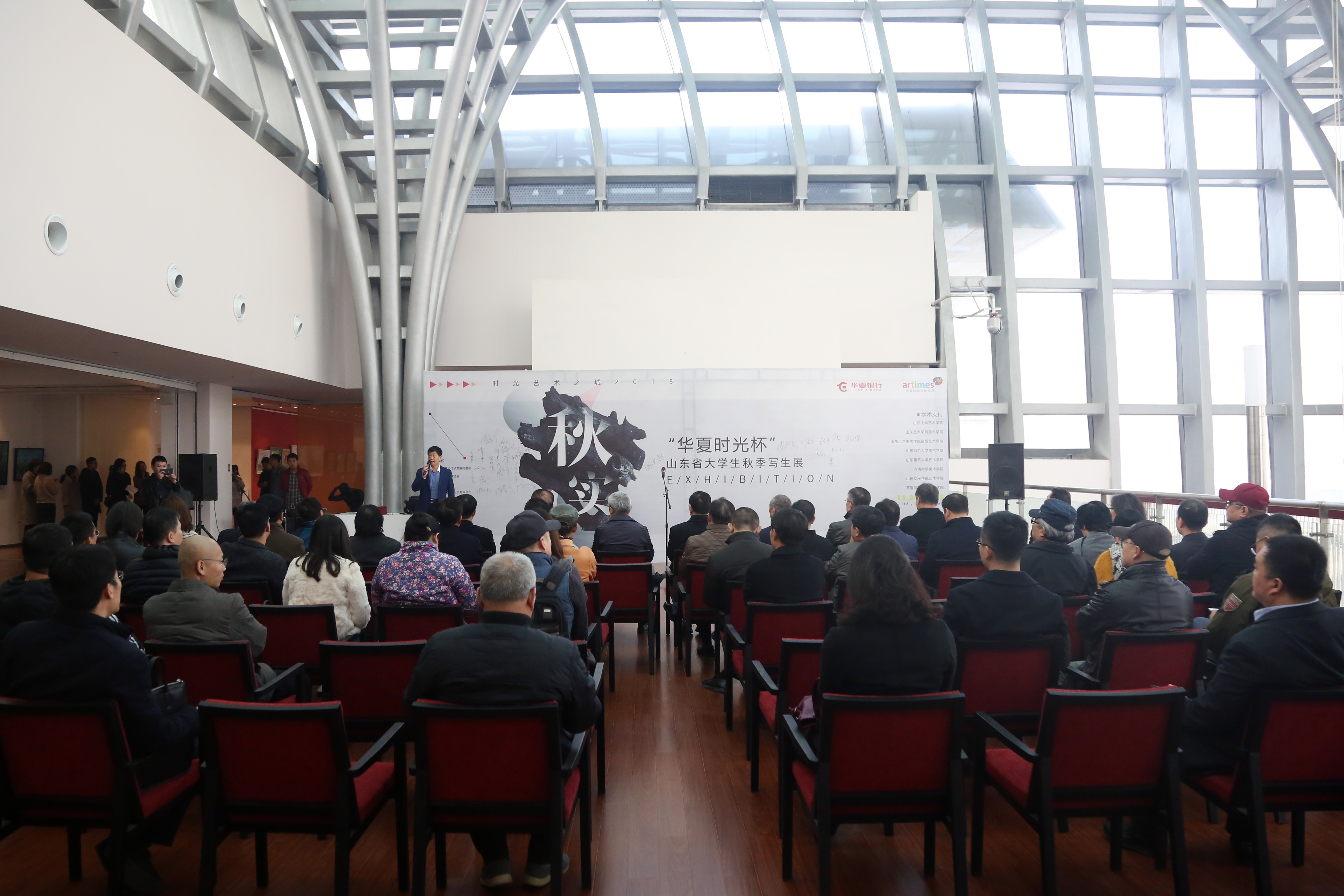 山東省文化和旅游廳黨組成員、副廳長王廷琦,山東省文聯(lián)黨組成員、副主席王映海,濟(jì)南市文聯(lián)黨組書記劉溪,山東省文聯(lián)辦公室副主任馬宗前,山東省齊魯文化傳承發(fā)展促進(jìn)會常務(wù)副會長鞠洪侖、秘書長吳東杰,省青年美協(xié)副主席李巖,華夏銀行濟(jì)南分行黨委委員、副行長劉增文,濟(jì)南城市建設(shè)集團(tuán)副總經(jīng)理、山東西城時光文化投資有限公司董事長徐文東,山東西城時光文化投資有限公司總經(jīng)理李若冰等領(lǐng)導(dǎo)嘉賓參加開幕式。
