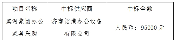 濱河集團(tuán)辦公家具采購(gòu)項(xiàng)目中標(biāo)公示