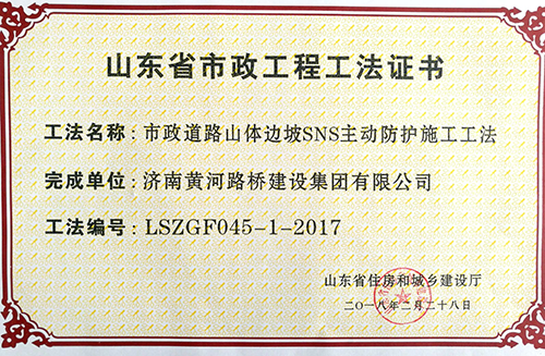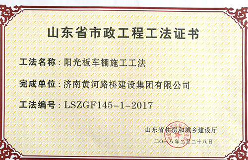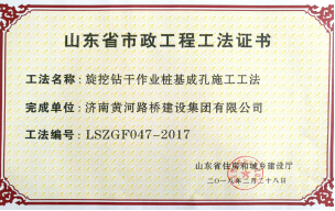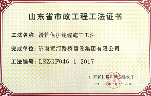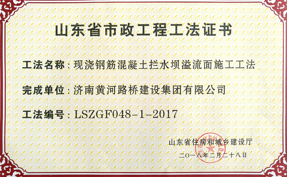 2018年2月28日,濟(jì)南黃河路橋建設(shè)集團(tuán)公司申報的6項工法全部被山東省住房和城鄉(xiāng)建設(shè)廳批準(zhǔn)為山東省市政工程工法。