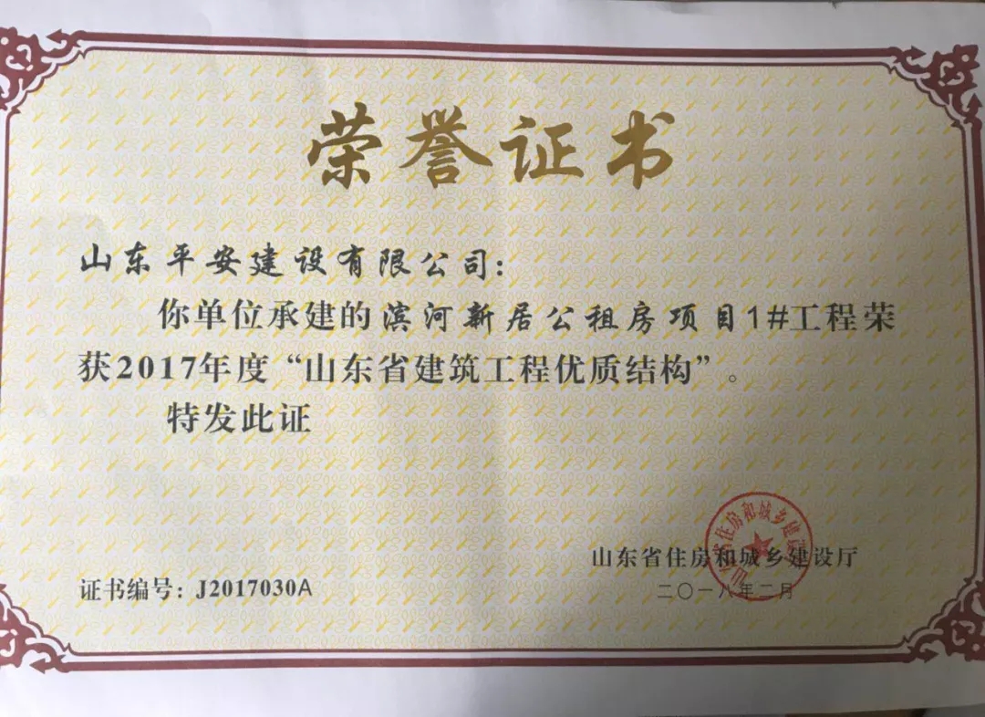 近日,由濟(jì)南城市建設(shè)集團(tuán)負(fù)責(zé)建設(shè)的濱河新居公共租賃住房工程1#樓,在山東省住房和城鄉(xiāng)建設(shè)廳組織的2017年度“山東省建筑工程優(yōu)質(zhì)結(jié)構(gòu)”評審中,憑借過硬的質(zhì)量、完善的管理順利通過專家考評,喜獲“山東省建筑工程優(yōu)質(zhì)結(jié)構(gòu)”獎(jiǎng)。
