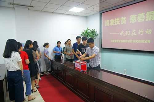 為全面踐行習(xí)近平新時代中國特色社會主義思想,深入貫徹落實習(xí)近平總書記“精準(zhǔn)扶貧、精準(zhǔn)脫貧”要求,弘揚中華民族扶貧濟(jì)困的傳統(tǒng)美德,鼓勵干部職工積極投身慈善事業(yè),根據(jù)集團(tuán)《關(guān)于開展2018年“精準(zhǔn)扶貧慈善捐款”活動實施方案》的要求,6月15日下午,濟(jì)南金衢公路勘察設(shè)計研究有限公司組織全體黨員干部群眾在第一會議室開展“精準(zhǔn)扶貧慈善捐款”活動。