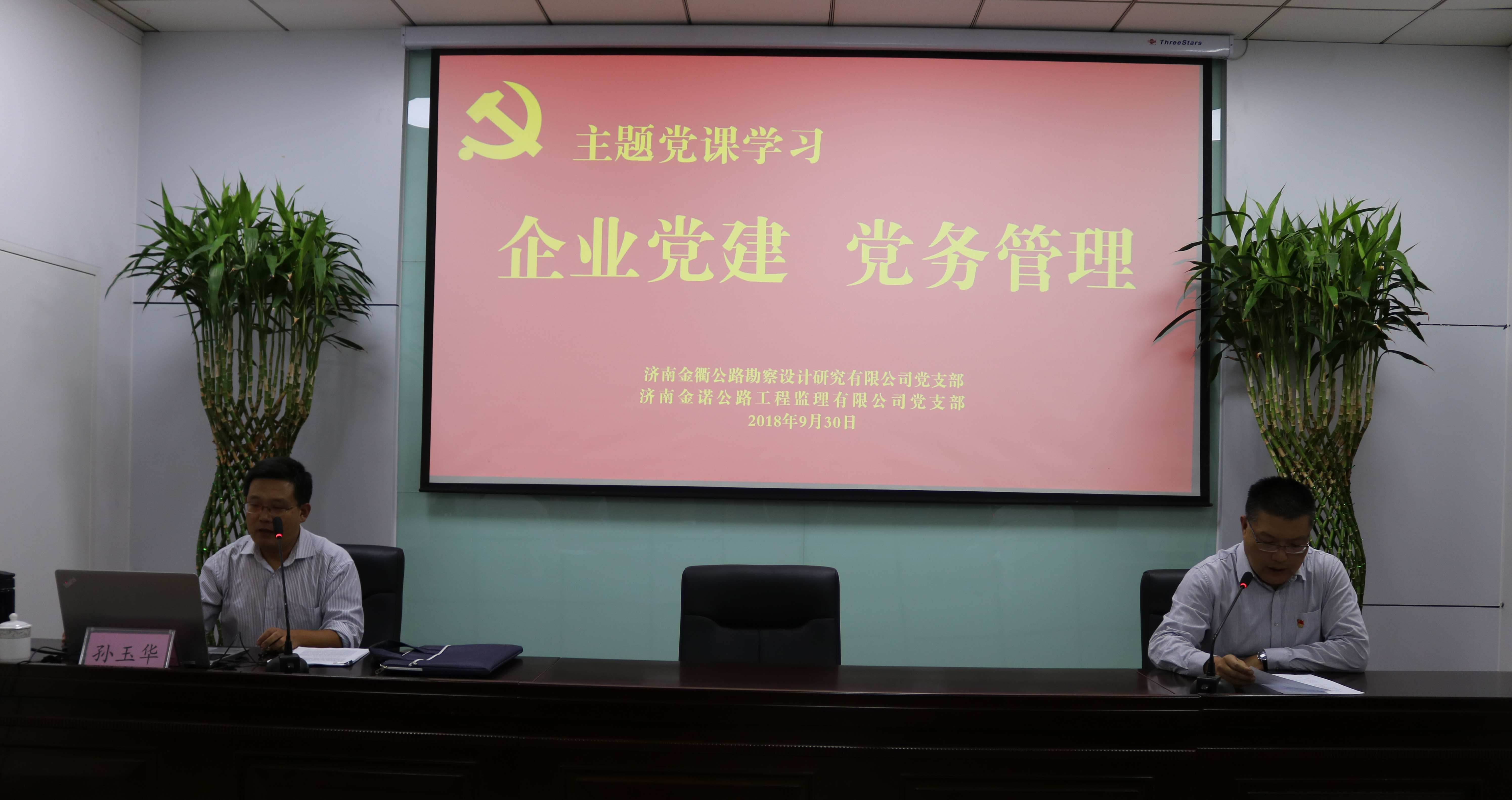 為貫徹落實新時代黨的建設(shè)總要求,進一步加強國有企業(yè)黨的領(lǐng)導(dǎo)與建設(shè),提高黨員干部思想政治素質(zhì),增強黨性修養(yǎng),夯實黨建工作基礎(chǔ),2018年9月30日下午,濟南金衢公路勘察設(shè)計研究有限公司黨支部、濟南金諾公路工程監(jiān)理有限公司黨支部組織全體黨員、中層及以上干部、積極分子五十余人在金衢公司第一會議室進行黨課學(xué)習。