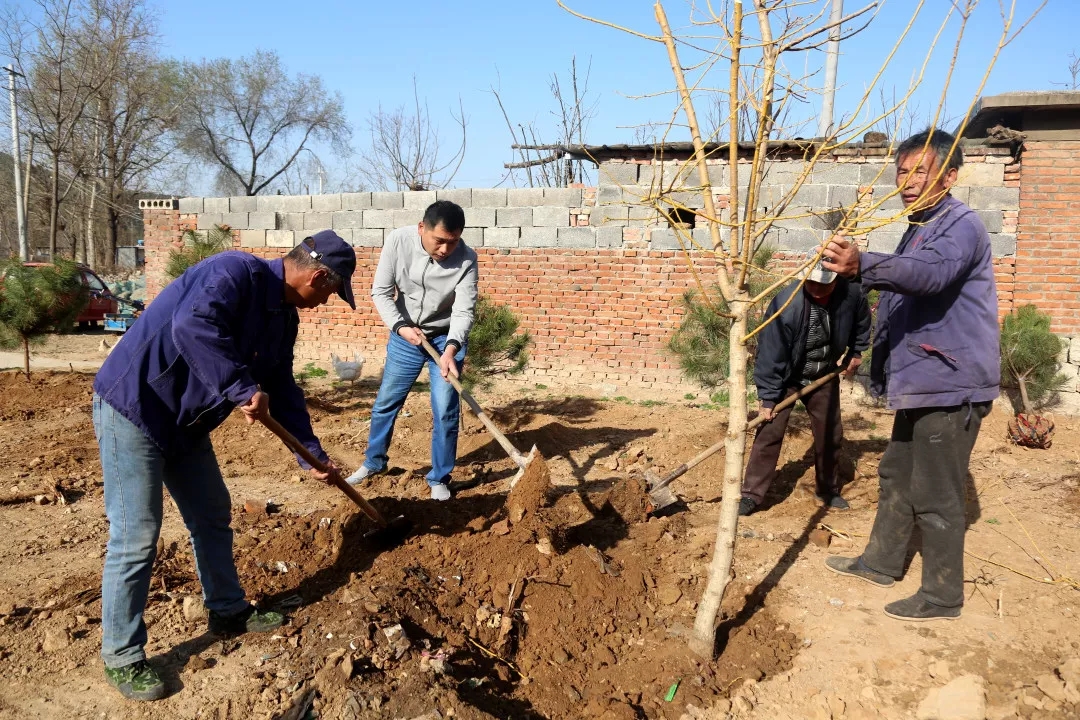 今天的第一項(xiàng)工作,是要在村里的公共裸土上植樹(shù)增綠。“這片位于村口的空地原來(lái)是塊荒地,時(shí)間長(zhǎng)了成了處垃圾場(chǎng),既污染環(huán)境又影響村容村貌,按照鎮(zhèn)里裸土覆綠的要求,我們用爭(zhēng)取的1萬(wàn)元資金購(gòu)買(mǎi)了黃金槐、黑油松、櫻花等好存活且觀賞性較強(qiáng)的苗木,把原荒地整平后進(jìn)行裸土覆綠”王棟棟說(shuō)道。