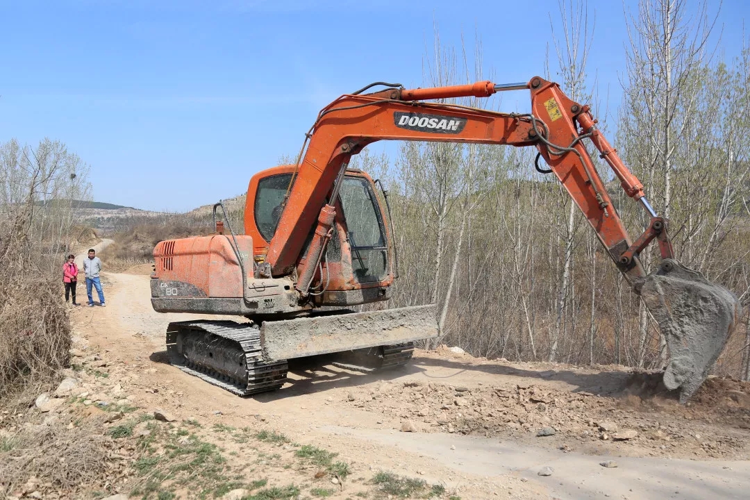 11:20王棟棟和任書(shū)記在生產(chǎn)路整修現(xiàn)場(chǎng)。村北側(cè)的生產(chǎn)路是連通大黃崖村與農(nóng)田果園的道路,也是通往鄰村陶裕村最便捷的道路。去年受大雨影響,道路嚴(yán)重受損,隨時(shí)有塌陷的危險(xiǎn),給群眾生產(chǎn)生活帶來(lái)諸多不便。他帶領(lǐng)村兩委和部分黨員群眾,利用三天時(shí)間對(duì)道路進(jìn)行了修復(fù),搶修出了一條臨時(shí)通道。要徹底解決道路塌陷問(wèn)題,就一定要重新翻修,日前,他從縣交通部門(mén)爭(zhēng)取的資金已經(jīng)到位,施工隊(duì)伍已進(jìn)場(chǎng)施工,目前正處于找平碾壓過(guò)程中,很快就將進(jìn)行道路硬化,一周時(shí)間即可恢復(fù)通行。