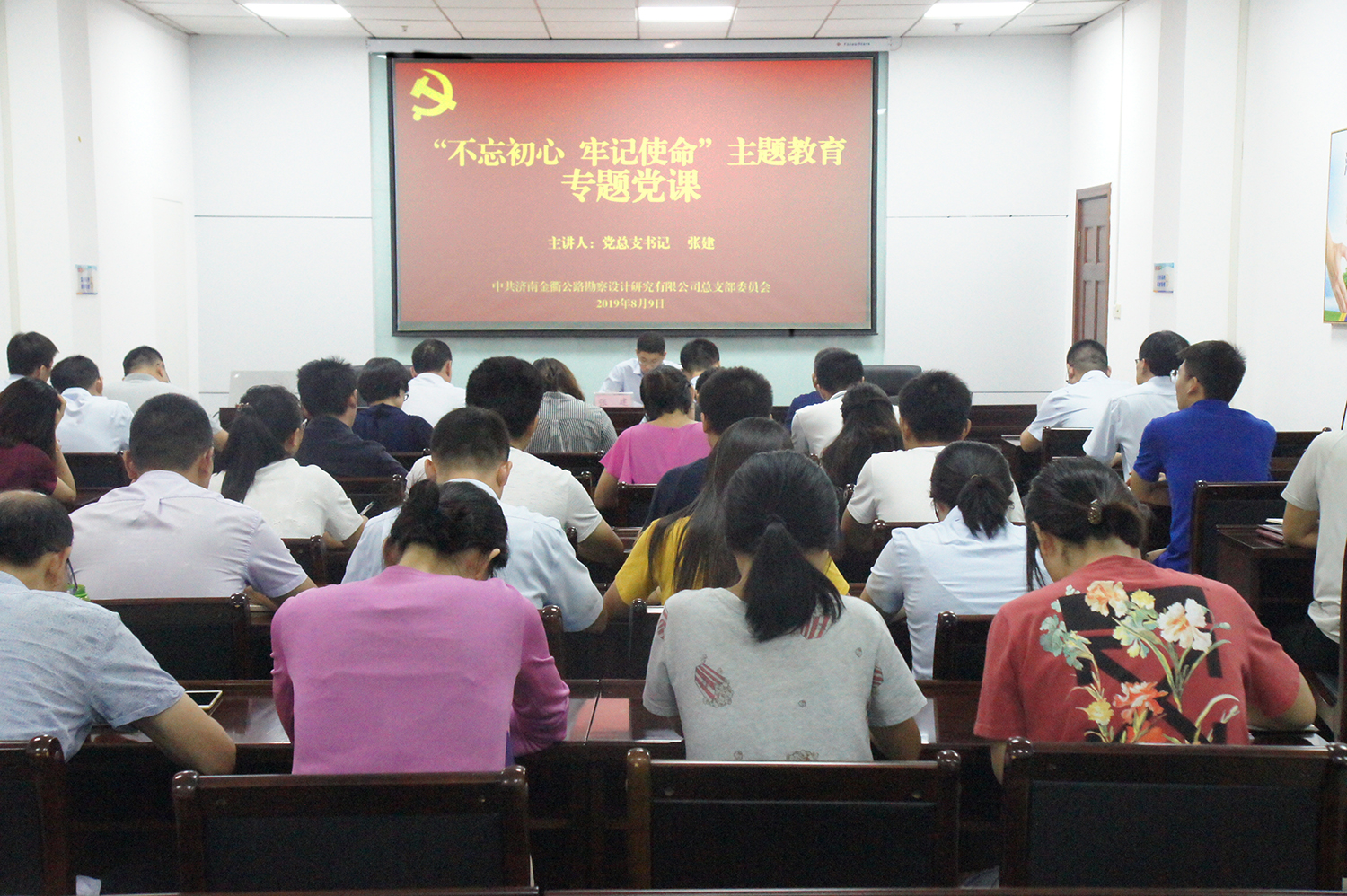 為深入推進“不忘初心 牢記使命”主題教育,不斷加強黨員干部教育管理,8月9日,濟南金衢公司黨支部開展主題教育專題黨課活動,全體黨員、中層以上管理干部、入黨積極分子。公司黨總支書記張建以“新常態(tài)下如何立足崗位以實踐行動詮釋實干、擔當”為題,為全體參加人員上了一堂內涵豐富、意義深遠的黨課。
