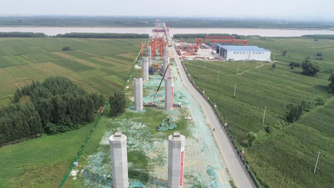 由濟(jì)南城市建設(shè)集團(tuán)負(fù)責(zé)建設(shè)的鳳凰路黃河大橋工程(G220至濟(jì)青高速公路王舍人互通立交連接線工程)位于濟(jì)南市歷城區(qū)、高新區(qū)、濟(jì)陽(yáng)區(qū),項(xiàng)目路線南起壩王路與荷花路交叉口,接現(xiàn)狀壩王路,依次跨越邯膠鐵路聯(lián)絡(luò)線、南水北調(diào)工程濟(jì)東明渠后繼續(xù)往北,在小河套村向西北方向延伸,跨越黃河后與G220平交。項(xiàng)目全長(zhǎng)6683米,包括特大橋2座,其中跨黃河主橋和引橋長(zhǎng)3788米,跨邯膠鐵路聯(lián)絡(luò)線及南水北調(diào)橋梁長(zhǎng)1323米。