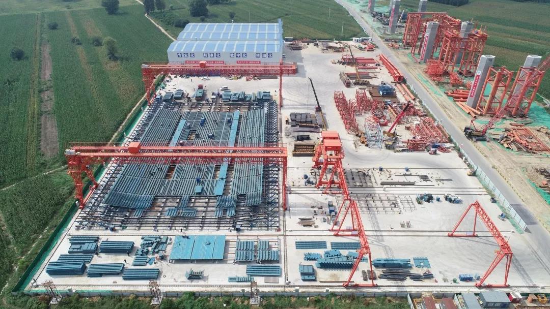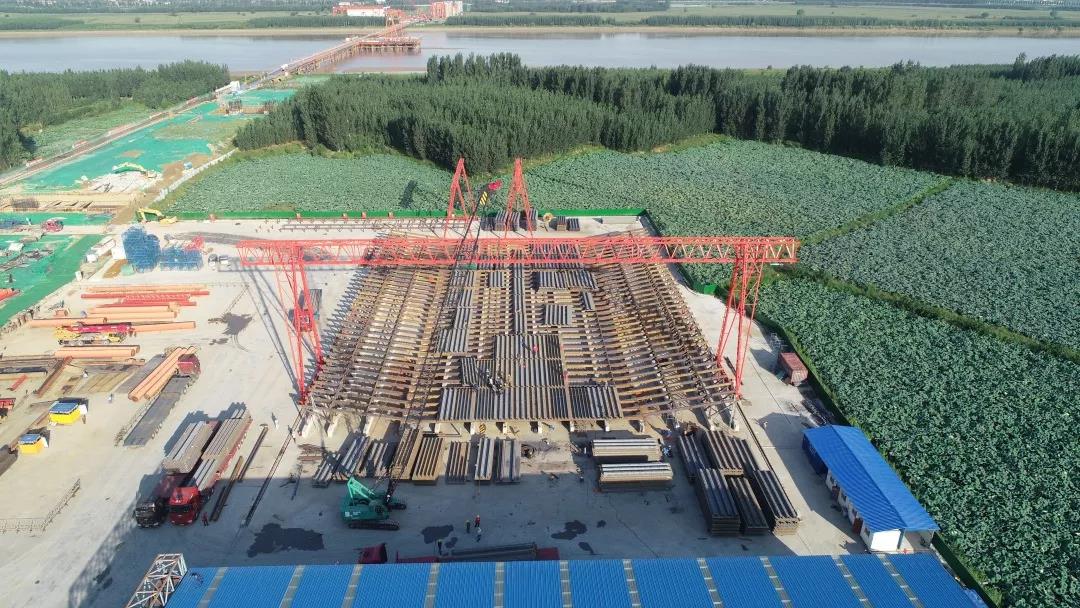 【北跨橋隧】鳳凰路黃河大橋:跨邯膠鐵路箱梁澆筑完成,北岸鋼箱梁開始總拼