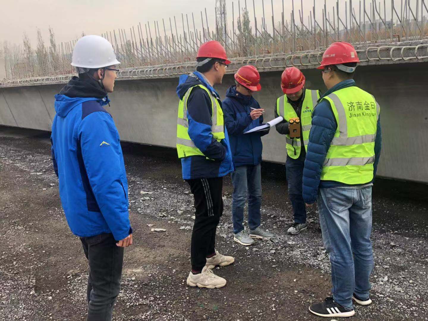 濟(jì)南市質(zhì)監(jiān)站、各工程項(xiàng)目建設(shè)辦等單位參加了督查工作,金曰公司總經(jīng)理熊大路、總工程師袁凱陪同。