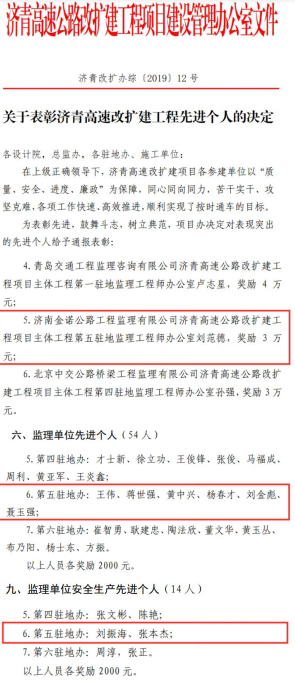 近日,由濟南城市建設集團所屬濟南金諾公路工程監(jiān)理有限公司承建的濟青高速第五駐地辦榮獲2019年山東省總工會“工人先鋒號”榮譽稱號, 同時,在2019年度該項目“決戰(zhàn)100天,確保按時交工通車”勞動競賽活動中表現突出,榮獲2019年濟青高速改擴建工程“優(yōu)秀監(jiān)理單位”、“安全杯”獲獎單位榮譽稱號;其中,項目負責人獲得“優(yōu)秀駐地監(jiān)理工程師”稱號, 6位同志獲得“監(jiān)理單位先進個人”稱號, 2位同志獲得“監(jiān)理單位安全生產先進個人” 稱號,共獲得專項獎勵49.6萬元。