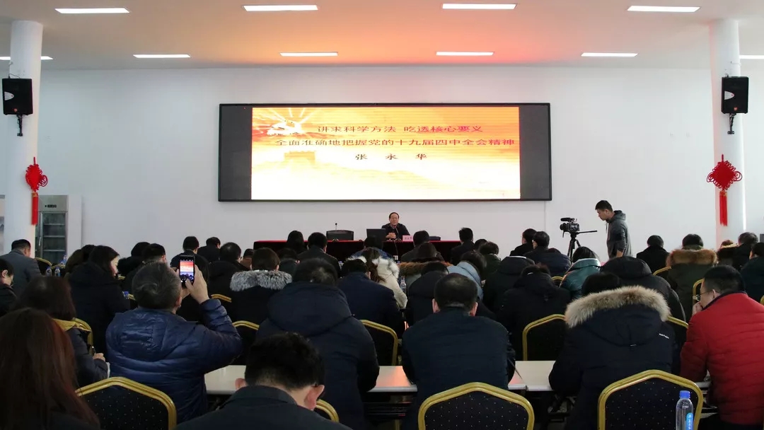 為更好地學(xué)習(xí)貫徹黨的十九屆四中全會(huì)精神,1月10日,集團(tuán)特邀市委、市紀(jì)委黨的十九大、十九屆四中全會(huì)精神、黨風(fēng)廉政建設(shè)宣講團(tuán)成員,市紀(jì)委監(jiān)委宣傳部副部長(zhǎng)、一級(jí)調(diào)研員張永華同志到集團(tuán)作黨的十九屆四中全會(huì)精神專題宣講。集團(tuán)領(lǐng)導(dǎo)班子成員及集團(tuán)機(jī)關(guān)支部全體黨員參加活動(dòng)。