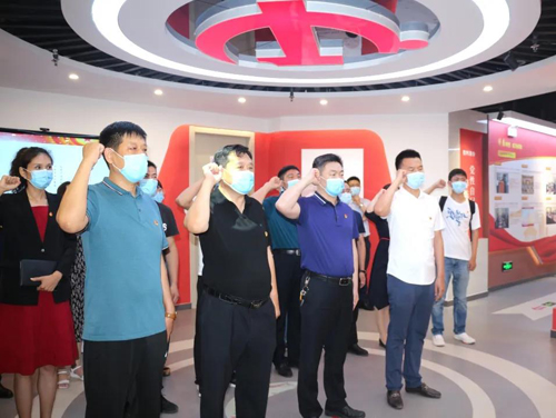 全體黨員在講解員的引導(dǎo)下,認真參觀學(xué)習(xí)、拍照記錄。觀看學(xué)習(xí)最后,大家共同高唱《沒有共產(chǎn)黨就沒有新中國》,并重溫入黨誓詞。