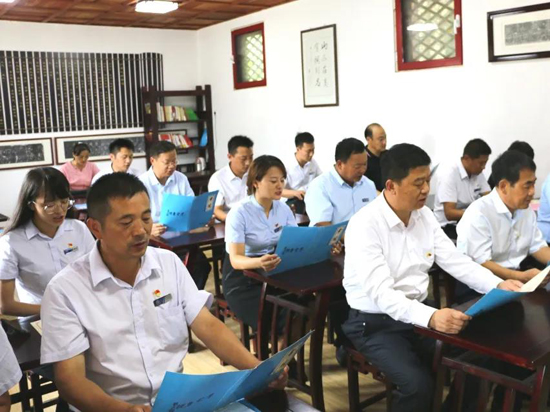 座談會結(jié)束后,所有參加黨建共建活動人員參觀了大峰山黨性教育基地“紅色南黃崖”教學(xué)點,充分感受革命情懷、錘煉黨性意志,并在初心廣場面對黨旗舉起右手,重溫入黨誓詞,莊嚴向黨組織宣誓,叩問內(nèi)心初衷,堅定理想信念。