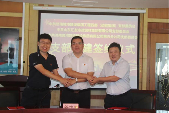 為進一步增強基層黨建活力,充分發(fā)揮基層黨建的核心引領作用,促進單位間的工作聯(lián)動與業(yè)務融合,9月17日,集團工程四部(動能集團)黨支部、城建集團園林公司黨支部、濟南黃河路橋五分公司黨支部結(jié)對共建簽約儀式。