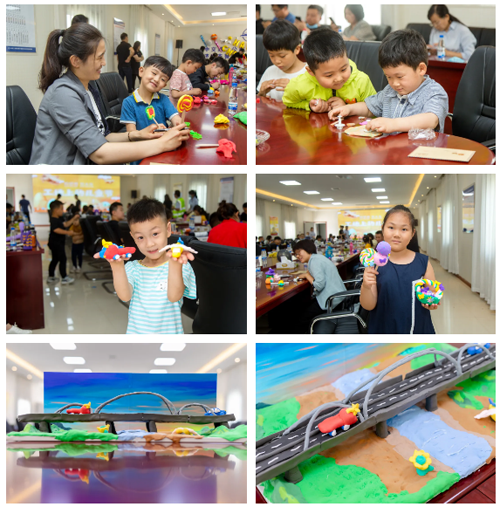 通過(guò)工程人員講解與現(xiàn)場(chǎng)參觀,孩子們對(duì)齊魯黃河大橋有了一定的認(rèn)識(shí),親子互動(dòng)環(huán)節(jié)中,在三位專業(yè)泥塑老師的指導(dǎo)下,小朋友們與家長(zhǎng)相互配合,用泥塑筑造他們心中的齊魯黃河大橋。