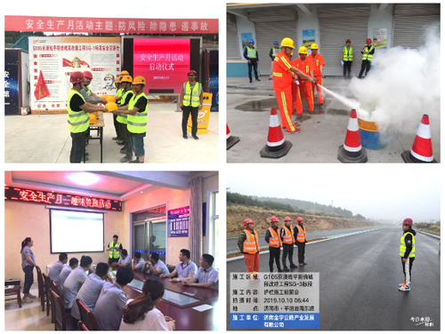 項目涉及橋梁工程、大型結構物、石方爆破、隧道工程、構件的加工與運輸安裝等,安全管理難度較大,金曰公司項目部從“綜合治理、責任落實、應急演練、科技結合”四方面入手,以更嚴格的要求,更有效的措施,更高壓的態(tài)勢,更嚴明的紀律,堅守生產紅線和底線思維,夯實安全生產基礎。金宇公司項目部通過建立嚴格的安全教育制度,做到施工人員入場教育、施工前安全技術交底、每周按班組安全教育、每日召開施工班前會,提高施工人員安全意識,筑牢施工安全防線。其中,金曰公司參建的SG-1標段作為濟南市國省道唯一的工程項目參加了省交通運輸廳“2019年度平安示范工地”評選活動。