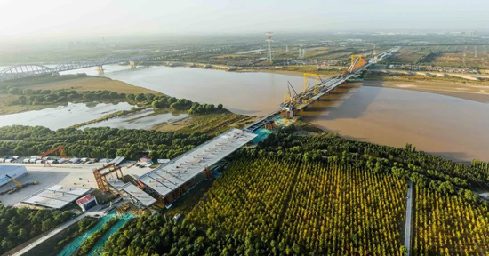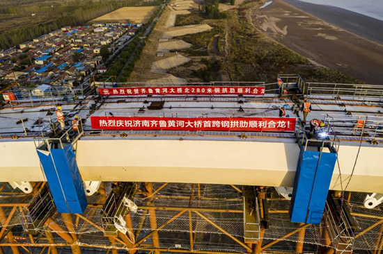 繼濟(jì)樂(lè)高速南延線順利通車(chē)、鳳凰黃河大橋主橋合龍后,由濟(jì)南城市建設(shè)集團(tuán)負(fù)責(zé)建設(shè)管理的跨黃通道工程又迎來(lái)重要節(jié)點(diǎn),經(jīng)過(guò)90天的連續(xù)作業(yè),10月21日凌晨,齊魯黃河大橋首跨拱肋順利合龍。隨著最后一節(jié)段拱肋的精準(zhǔn)安裝到位,項(xiàng)目建設(shè)再次取得重要節(jié)點(diǎn)性進(jìn)展。