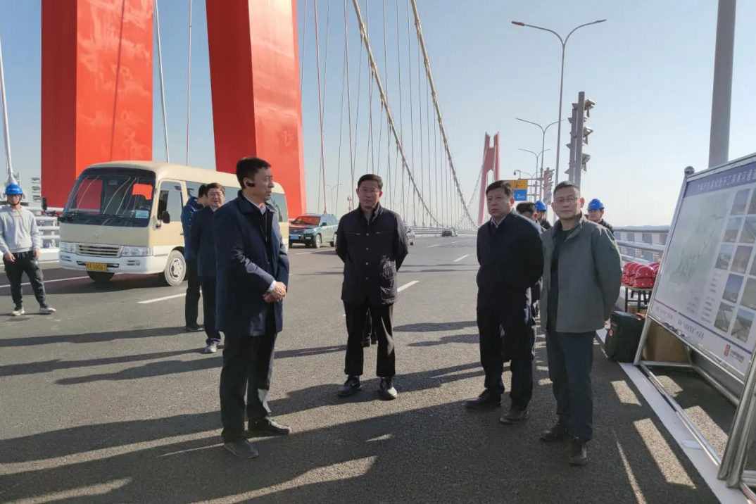 12月4日上午,濟(jì)南市城鄉(xiāng)交通運(yùn)輸局黨組書(shū)記曹殿軍一行到濟(jì)南黃河鳳凰大橋調(diào)研項(xiàng)目建設(shè)情況,市交通運(yùn)輸事業(yè)發(fā)展中心主任楊峰陪同調(diào)研。建設(shè)集團(tuán)黨委書(shū)記、董事長(zhǎng)張海平,副總經(jīng)理許為民參加活動(dòng)。