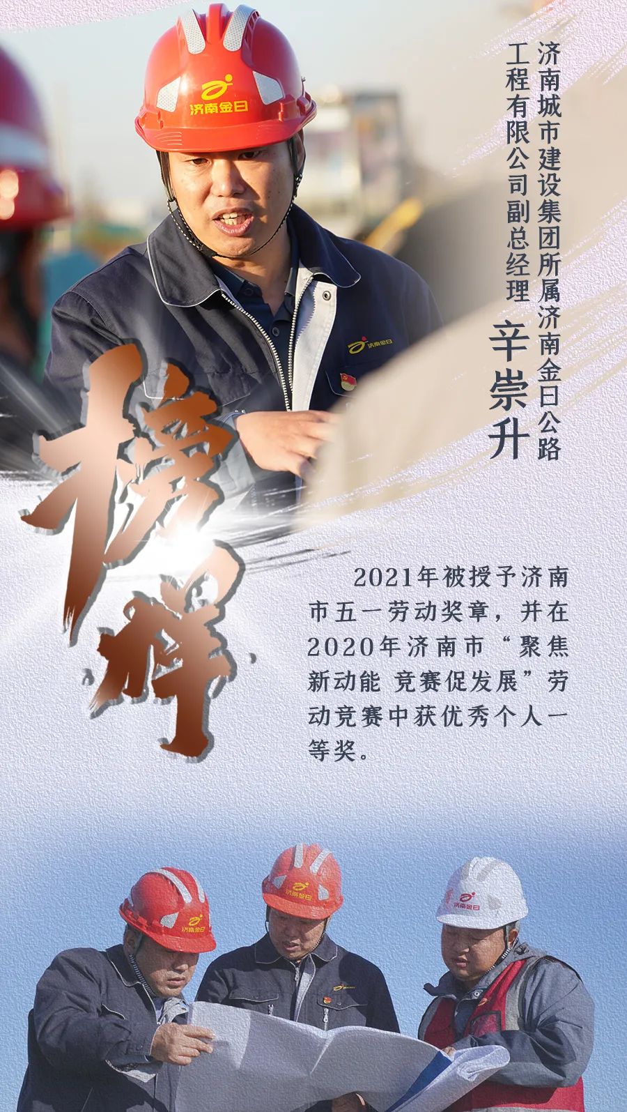 23年公路建設(shè)生涯,從少年到壯年,他堅(jiān)守一線、初心不改。廿余載步履鏗鏘,從主城區(qū)到起步區(qū),他的逐夢(mèng)之路,在城市夢(mèng)想的綻放中愈加堅(jiān)定遼闊。辛崇升,濟(jì)南城市建設(shè)集團(tuán)所屬濟(jì)南金曰公路工程有限公司副總經(jīng)理,2021年被授予濟(jì)南市五一勞動(dòng)獎(jiǎng)?wù)?,并?020年濟(jì)南市“聚焦新動(dòng)能 競(jìng)賽促發(fā)展”勞動(dòng)競(jìng)賽中獲優(yōu)秀個(gè)人一等獎(jiǎng)。