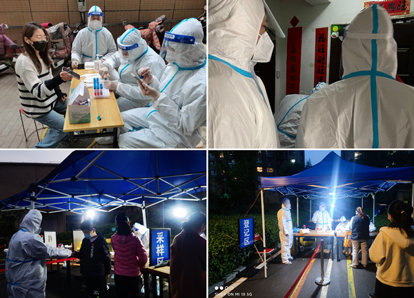 在標山社區(qū),身穿白色防護服的青年突擊隊志愿者全力服從街道社區(qū)指揮,細致周到地協(xié)助社區(qū)做好核酸檢測人員信息登記、現(xiàn)場秩序維護等工作。“請保持兩米安全距離”“請打開健康碼”“請拿好您的貼紙”,在標山社區(qū)核酸檢測點隨處可見他們穿梭忙碌的身影,他們耐心細致的服務(wù)為標山社區(qū)繪出一道安心的防護白。