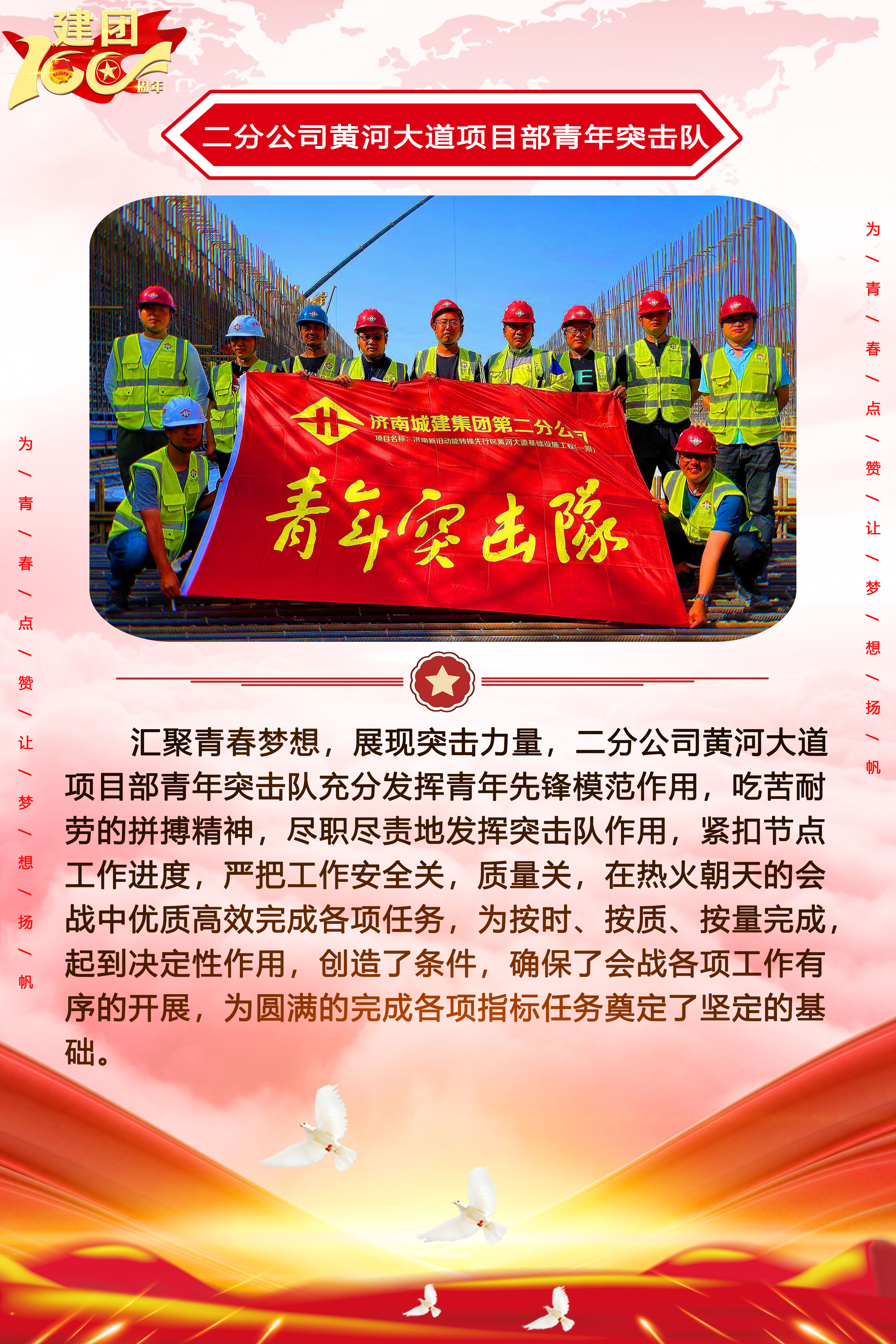 為慶祝中國共產(chǎn)主義青年團(tuán)成立100周年,深情回顧共青團(tuán)發(fā)展歷程,進(jìn)一步增強(qiáng)廣大團(tuán)員青年敬團(tuán)、愛團(tuán)意識,提升團(tuán)組織的凝聚力和向心力,展示公司團(tuán)員青年積極向上、奮發(fā)有為的精神風(fēng)貌,集團(tuán)第四團(tuán)委——濟(jì)南城建集團(tuán)有限公司團(tuán)委持續(xù)開展團(tuán)旗在城建飄揚(yáng)合影活動。