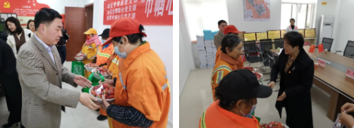 活動(dòng)中,雙方黨支部黨員對(duì)“三八”國(guó)際婦女節(jié)仍堅(jiān)守一線工作崗位的環(huán)衛(wèi)女職工表示崇高的敬意,并對(duì)他們無(wú)私奉獻(xiàn)、任勞任怨的品質(zhì)表示贊許,同時(shí)向環(huán)衛(wèi)職工送上慰問品。