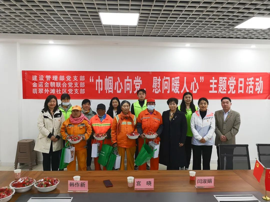 3月8日,集團(tuán)建設(shè)管理部黨支部、金諾金朝聯(lián)合黨支部赴華山街道翡翠外灘社區(qū)開展“巾幗心向黨,慰問暖人心”主題黨日活動(dòng)。