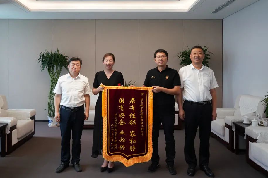 7月18日,一面印有“居有佳鄰家和睦 國(guó)有好企業(yè)必興”的錦旗送至建設(shè)集團(tuán),這是濟(jì)南市民何先生對(duì)集團(tuán)職工何倩給予其妻子的及時(shí)幫助表示誠(chéng)摯的感謝。集團(tuán)黨委副書記鐘善良、政工部負(fù)責(zé)同志出席活動(dòng)。