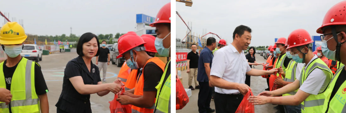 活動(dòng)中,慰問人員將防暑降溫慰問品送到建設(shè)者手上,感謝他們?yōu)闈?jì)南建設(shè)所作出的貢獻(xiàn),并叮囑大家勞逸結(jié)合,增強(qiáng)自我防護(hù)意識(shí),避免高溫及疲勞作業(yè),統(tǒng)籌抓好疫情防控、安全生產(chǎn)和項(xiàng)目建設(shè)工作。