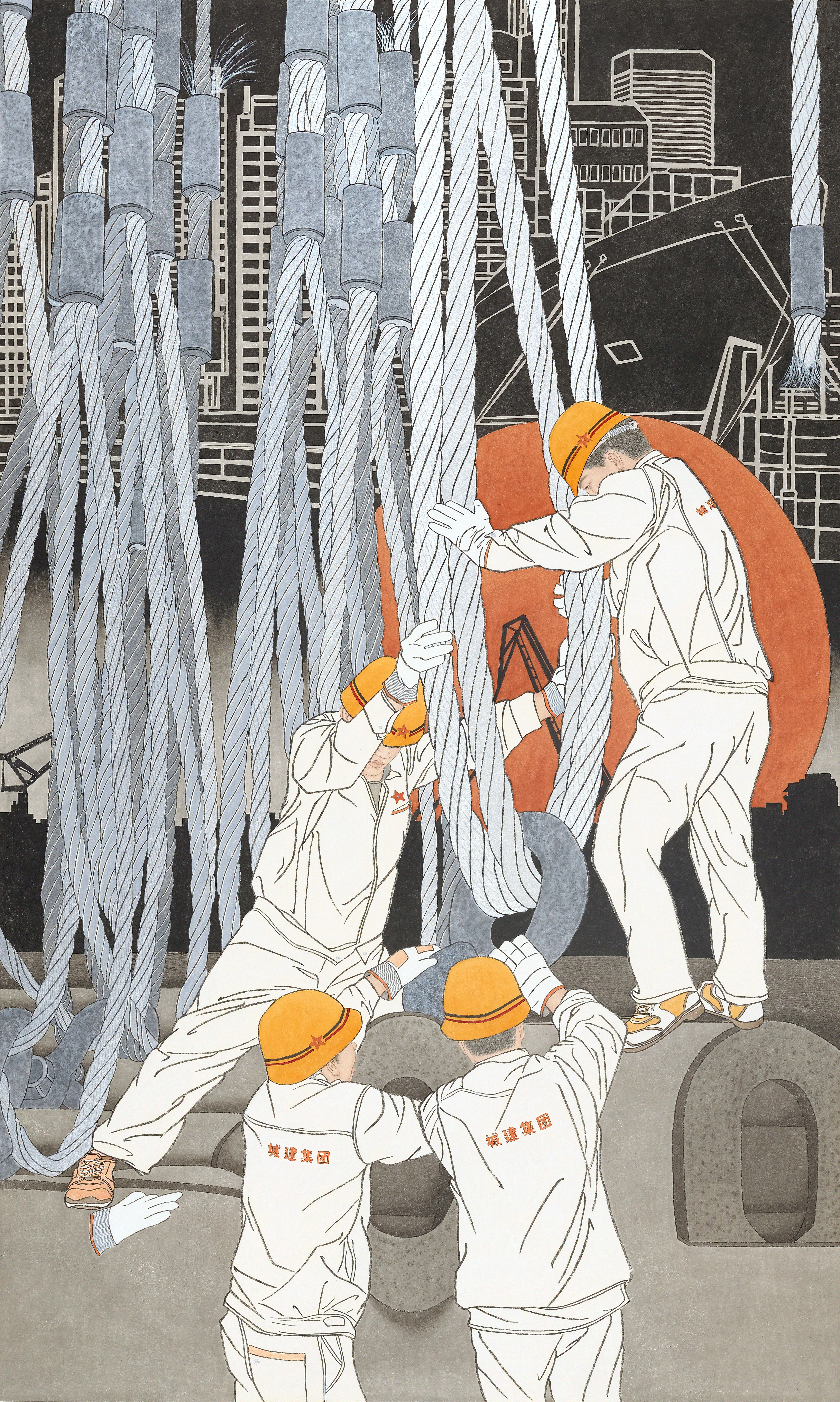 本次展覽特邀52位全國知名藝術家,聚焦新時代重大現實題材、黃河文化、“二安”文化、泉文化、紅色文化及廉潔文化等主題,創作并展出54件作品,形式包括國畫、油畫、漆畫、漫畫等題材。作品以人民為中心,與時代同步伐,集思想性、藝術性和學術性為一體,展現了濟南城市建設集團“城建鐵軍”在推動省會由“大明湖時代”邁向“黃河時代”的歷史進程中履行國企擔當、勇于攻堅克難的新時代風采,展示錦繡泉城十年蝶變、高質量發展的新時代風貌。