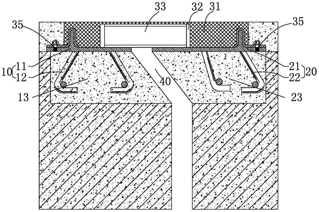 本發(fā)明專利用于解決現(xiàn)有的伸縮縫裝置結(jié)構(gòu)復(fù)雜、剛性不足、柔性不足等問題。該裝置安裝在兩個橋面之間,包括安裝一部、安裝二部和設(shè)置在兩部之間的半剛性連接件,半剛性連接件整體為橡膠材質(zhì)的彈性體,在該彈性體內(nèi)部設(shè)置有若干沿順橋向設(shè)置的空腔,且在該空腔內(nèi)設(shè)置非粘合的抗彎部件,且抗彎部件在該空腔內(nèi)具有滑動空間;該抗彎部件在伸縮方向和長度方向上具有足夠高的剛度,使得車輛通過該彈性體時具有極高的抗壓剛度。該裝置可以全面覆蓋伸縮縫位置,具有使用壽命長、免清潔、免維護的特點。