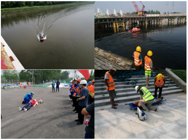 此次演練以小清河發(fā)生洪水險情為背景,按照宣布啟動應(yīng)急響應(yīng)、展開險情排查、集結(jié)指揮部成員和實地開展防汛搶險流程進行。演練內(nèi)容包括堤壩加固、拋投救生圈救援、救生艇救援、醫(yī)療救護4個科目。