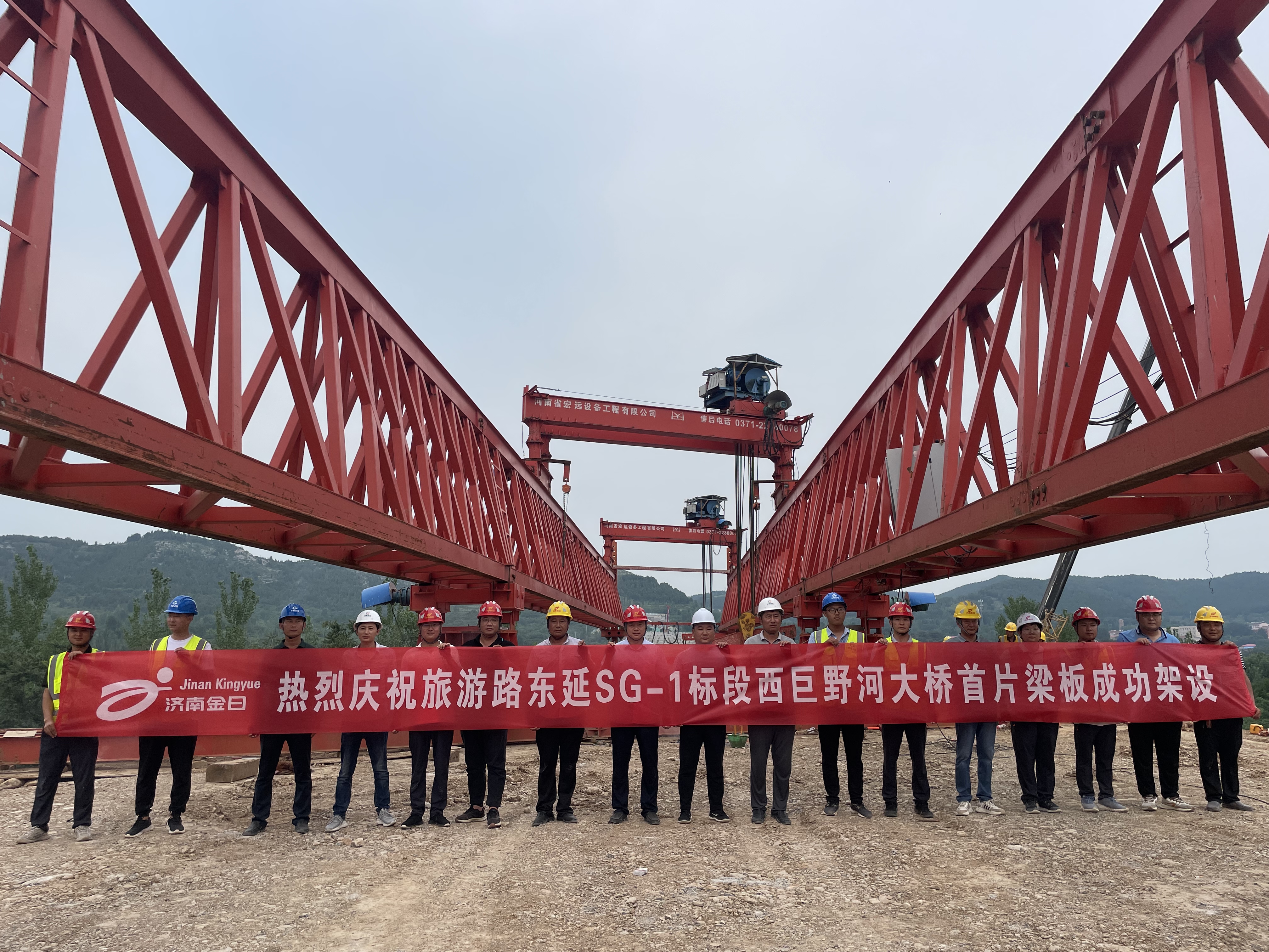 7月2日,由濟(jì)南城市建設(shè)集團(tuán)所屬濟(jì)南金曰公路工程有限公司承建的旅游路東延一標(biāo)段西巨野河大橋順利完成首片箱梁架設(shè),標(biāo)志著項(xiàng)目正式進(jìn)入上部結(jié)構(gòu)施工階段。