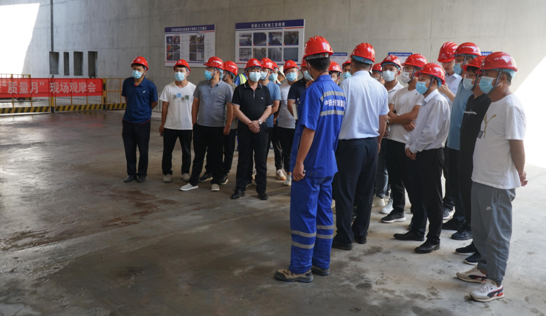 觀摩會活動中,項目負責人向觀摩團全面講解了項目建設總體情況、多卡模板工藝流程、管片箱涵預制要點、盾構組裝流程等內容。項目通過5S管理,實現了混凝土結構內實外美,保障了工程質量安全全面受控。