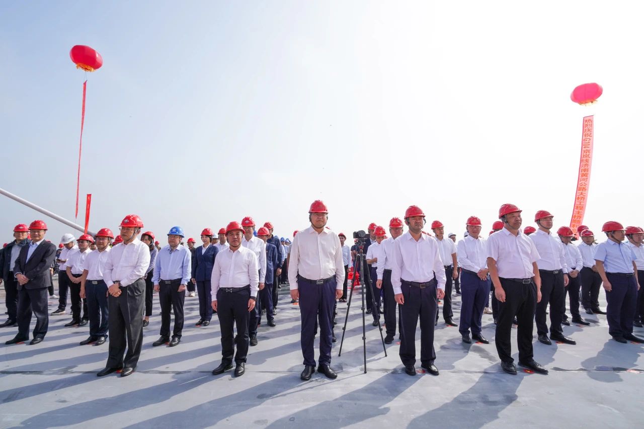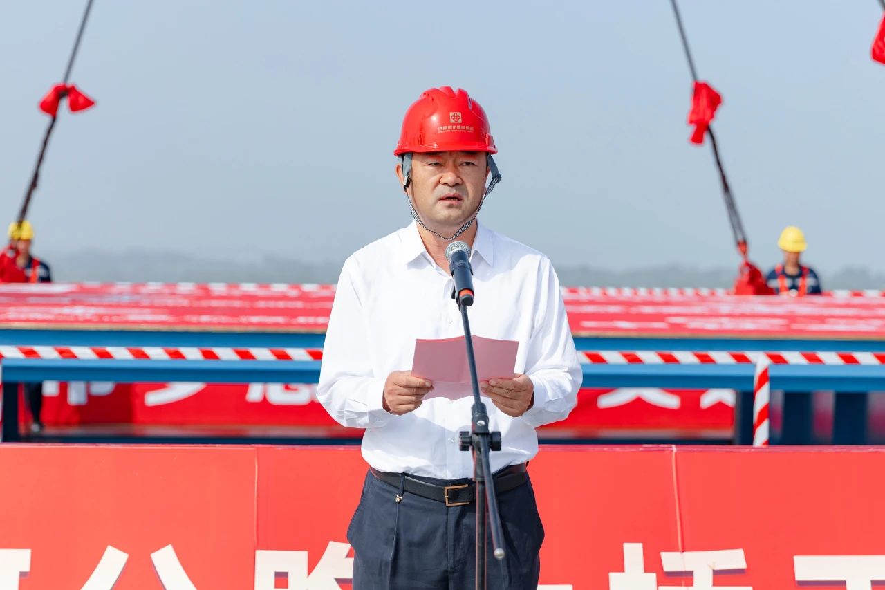建設(shè)集團(tuán)黨委書記、董事長(zhǎng)史海成宣布G104京嵐線濟(jì)南黃河公路大橋主橋合龍。