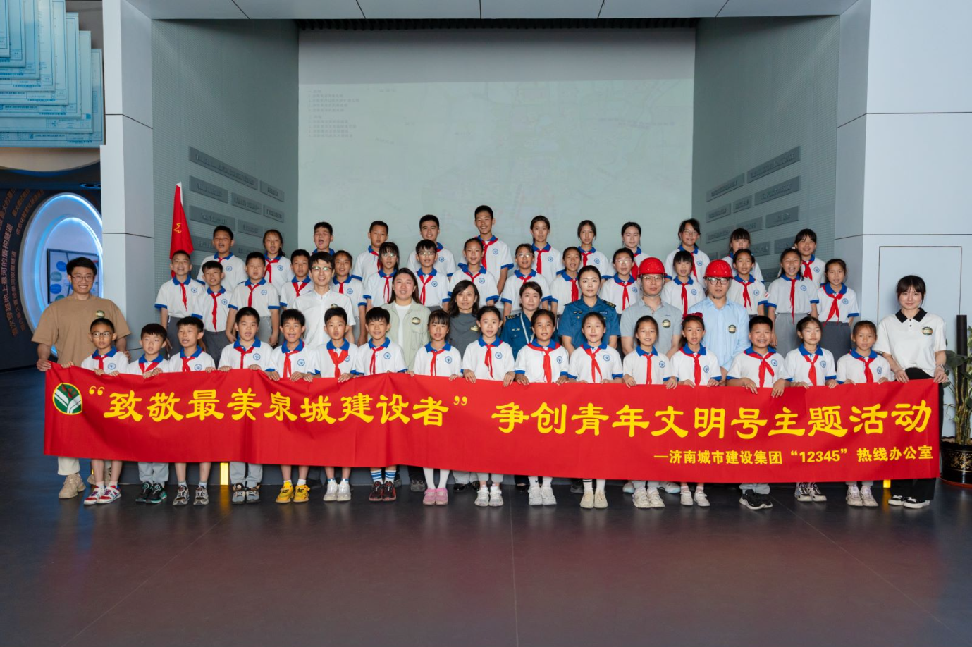 在濟(jì)南城市建設(shè)集團(tuán)“四橋四隧”展廳,少先隊(duì)員們感受了濟(jì)南城市建設(shè)集團(tuán)在落實(shí)黃河流域生態(tài)保護(hù)和高質(zhì)量發(fā)展戰(zhàn)略及“項(xiàng)目建設(shè)年”工作部署中的生動(dòng)實(shí)踐。