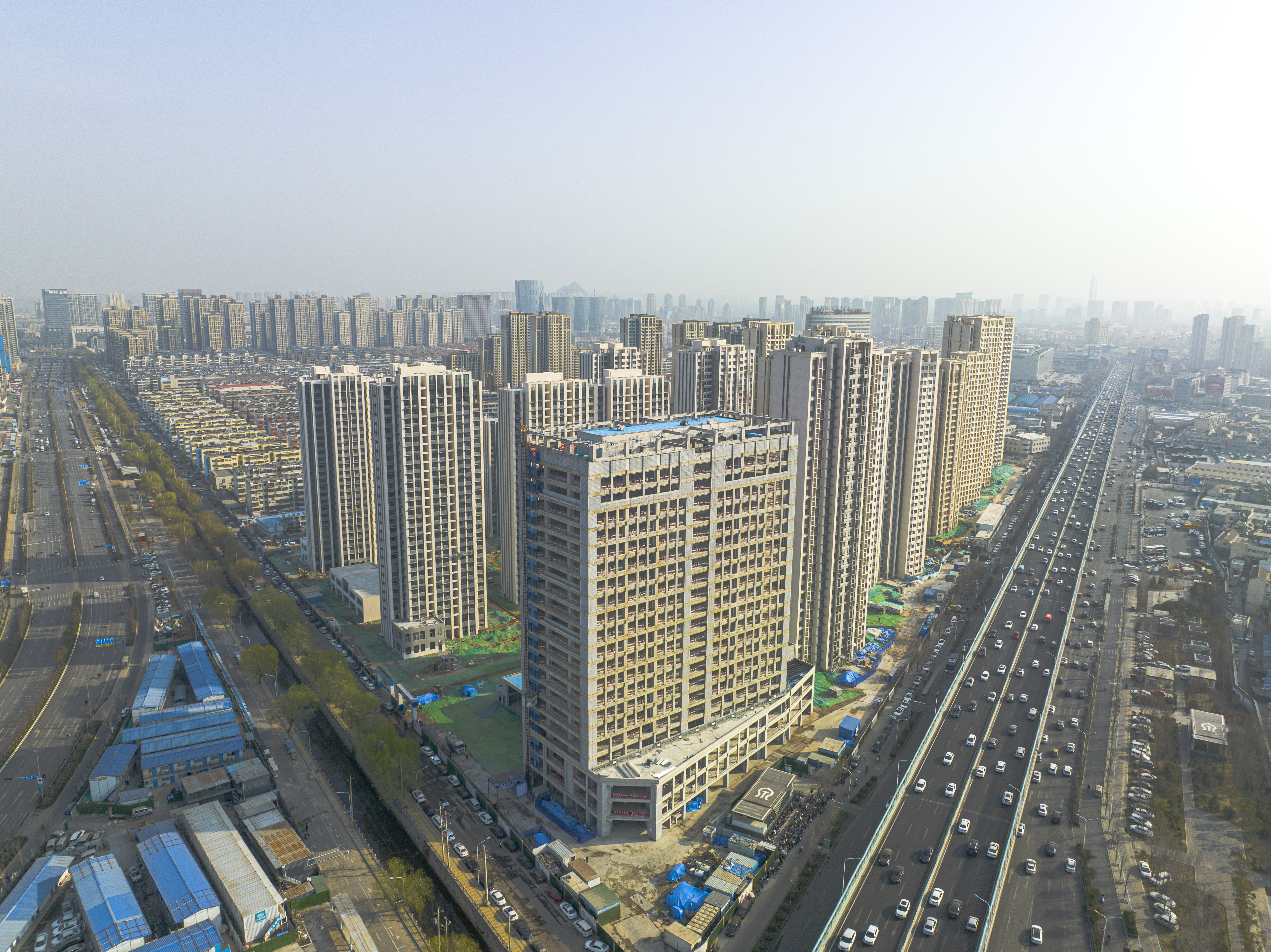 除了安置房項目建設(shè),在臘山河西側(cè)3#、4#地塊租賃公寓建設(shè)現(xiàn)場,主體結(jié)構(gòu)施工全部完成,目前正進行二次結(jié)構(gòu)施工,項目建成后將提供5027套租賃公寓;孫耿租賃住房A-1地塊項目新建住宅樓13棟,目前10棟樓已封頂,正在進行二次結(jié)構(gòu)施工;租賃住房項目建成后將進一步滿足新市民、青年人的住房需求。