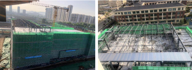 大廟屯片區(qū)地塊 X-8 初中項目是濟南市市中區(qū)教育和體育局為緩解片區(qū)就學壓力,優(yōu)化學生辦學條件規(guī)劃的重點民生項目,由濟南城市建設集團負責建設,該項目位于大廟屯片區(qū),地處二環(huán)南路以北、克郎山西路以東,總用地面積58668平方米,總建筑面積 26302 平方米,為 45 班初中項目,主要有食堂及報告廳、教學綜合樓、風雨操場、配電室及器材室、主入口門衛(wèi)、次入口門衛(wèi)、非機動車棚、地下車庫八個單體,包括室外體育場、道路、綠化、室外管網(wǎng)的建設,項目裝配率高達68.42%,鋼結構主體結構,ALC裝配墻板,頂板澆筑使用樓承板新型材料,在保證工程安全性、實用性同時有效提高了施工效率。