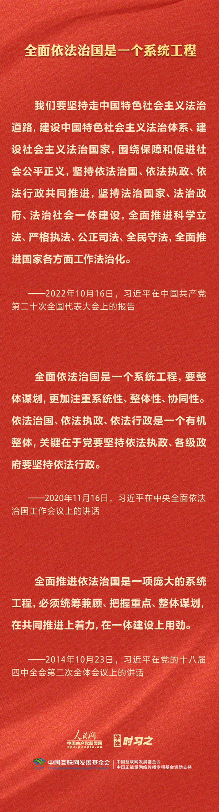 今年是貫徹落實黨的二十大精神的開局之年。中共中央政治局決定從今年4月開始,在全黨自上而下開展學(xué)習(xí)貫徹習(xí)近平新時代中國特色社會主義思想主題教育。習(xí)近平法治思想是習(xí)近平新時代中國特色社會主義思想的重要組成部分,人民網(wǎng)·中國共產(chǎn)黨新聞網(wǎng)推出學(xué)法時習(xí)之·學(xué)習(xí)習(xí)近平法治思想系列策劃,本篇聚焦“堅持依法治國、依法執(zhí)政、依法行政共同推進(jìn),法治國家、法治政府、法治社會一體建設(shè)”。