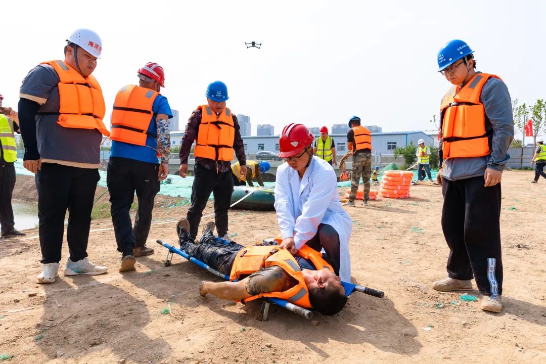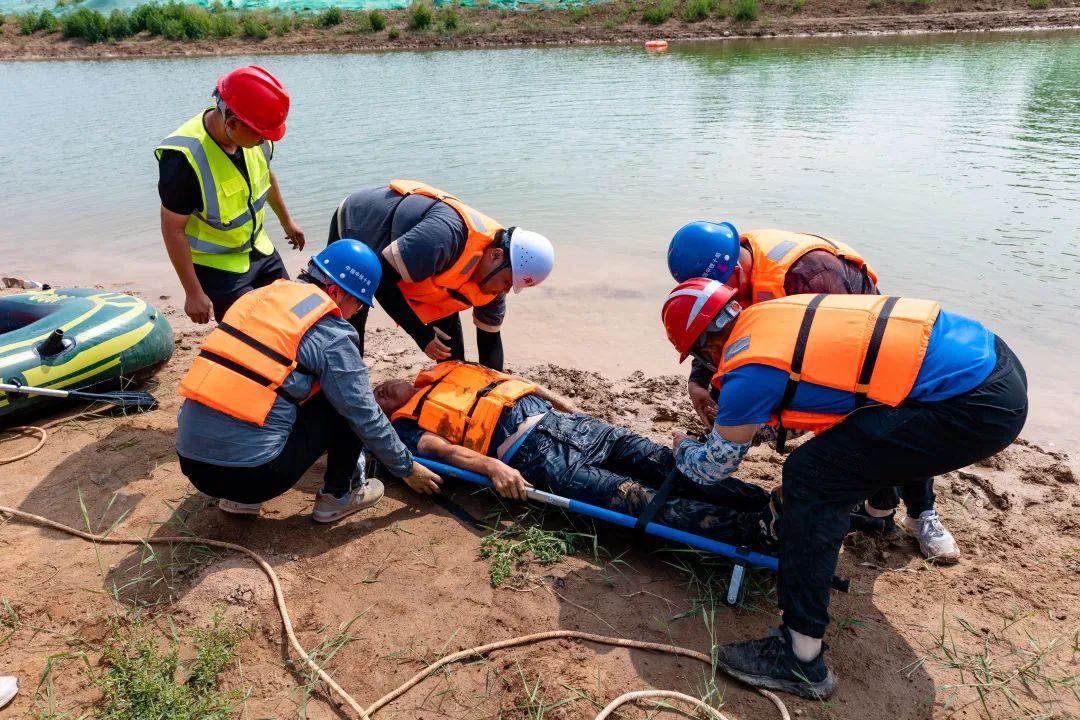 本次防汛搶險演練模擬遇到暴雨天氣,發(fā)生人員落水、水位上漲過快等危險情況時的應(yīng)急處置工作流程,設(shè)置險情上報、救生艇救援、醫(yī)療救護、緊急排水等環(huán)節(jié),演練過程中,各小組嚴(yán)格按照流程開展工作,充分展現(xiàn)出了現(xiàn)場緊急處理能力和團隊協(xié)作精神。