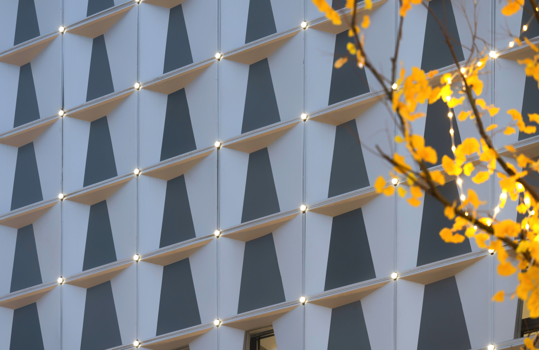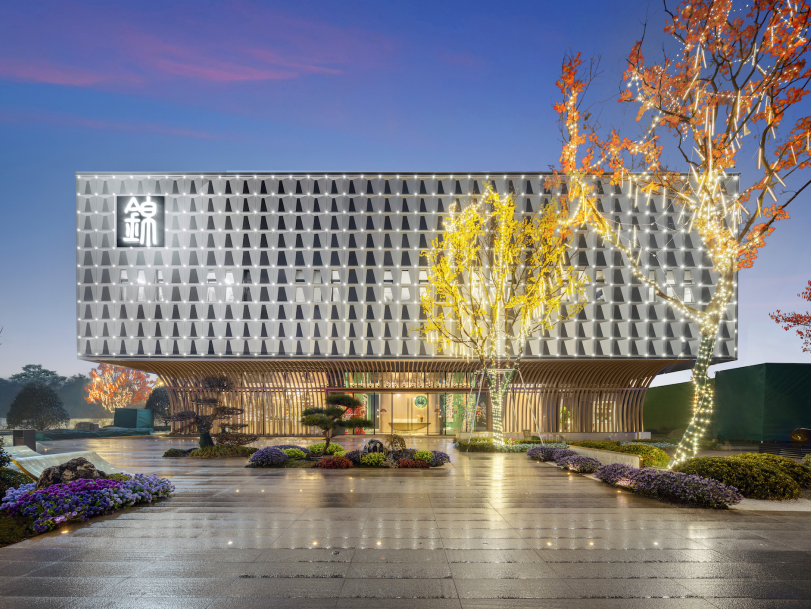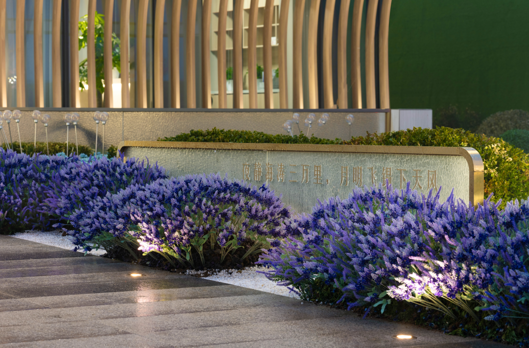 天風(fēng)錦都項(xiàng)目位于濟(jì)南市槐蔭區(qū),遠(yuǎn)觀風(fēng)云平靜,近看風(fēng)帆揚(yáng)起,潺潺流水與汩汩噴泉的水景,加之抽象風(fēng)帆,隔離嘈雜的城市道路與車流,形成廣場(chǎng)藝術(shù)空間。鄰邊水景環(huán)抱,遠(yuǎn)處螢火點(diǎn)點(diǎn),映襯建筑,大面積白色折線藝術(shù)的景墻,形成半圍合室外洽談區(qū),藝術(shù)廣場(chǎng)白天是中小型營(yíng)銷活動(dòng)的舉辦地、唯美浪漫的室外洽談區(qū),功能復(fù)合,靈活多變。